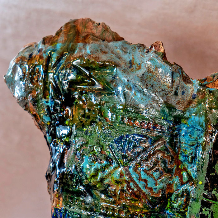 MATERIALI: Argille organiche (mix), fusioni vitree, smalti e ossidi